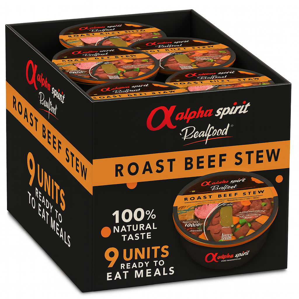 Alimento húmedo completo monoproteico de gama SUPER PREMIUM (Real Food Roast Beef Stew) para perros adultos y senior de todas las tallas, elaborado con 97% de ternera fresca como única proteína animal. Es sin cereales (grain free) y sin gluten, ideal para perros con intolerancias o estómagos sensibles, con proteína media (12,5%) y grasa moderada que ayudan al mantenimiento muscular y aportan energía equilibrada. Enriquecido con vitaminas y minerales esenciales, favorece defensas, digestión y vitalidad. Su textura jugosa cocinada a baja temperatura garantiza alta palatabilidad y digestibilidad. Apto para perros esterilizados, ya que su perfil nutricional ayuda a controlar el peso. Diccionario NaturPatitas.